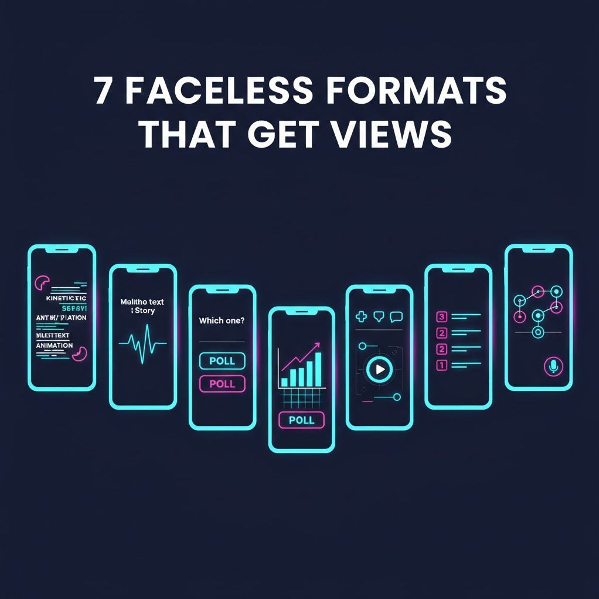 The best faceless video formats for TikTok are quiz and poll interactive videos, Reddit-style narrated stories, and countdown list reveals. TikTok’s algorithm prioritises completion rate and comment engagement, which these formats drive naturally. Kinetic typography and text story narration also perform well on TikTok as universal formats.